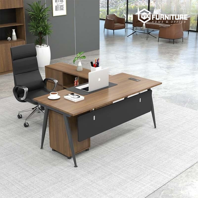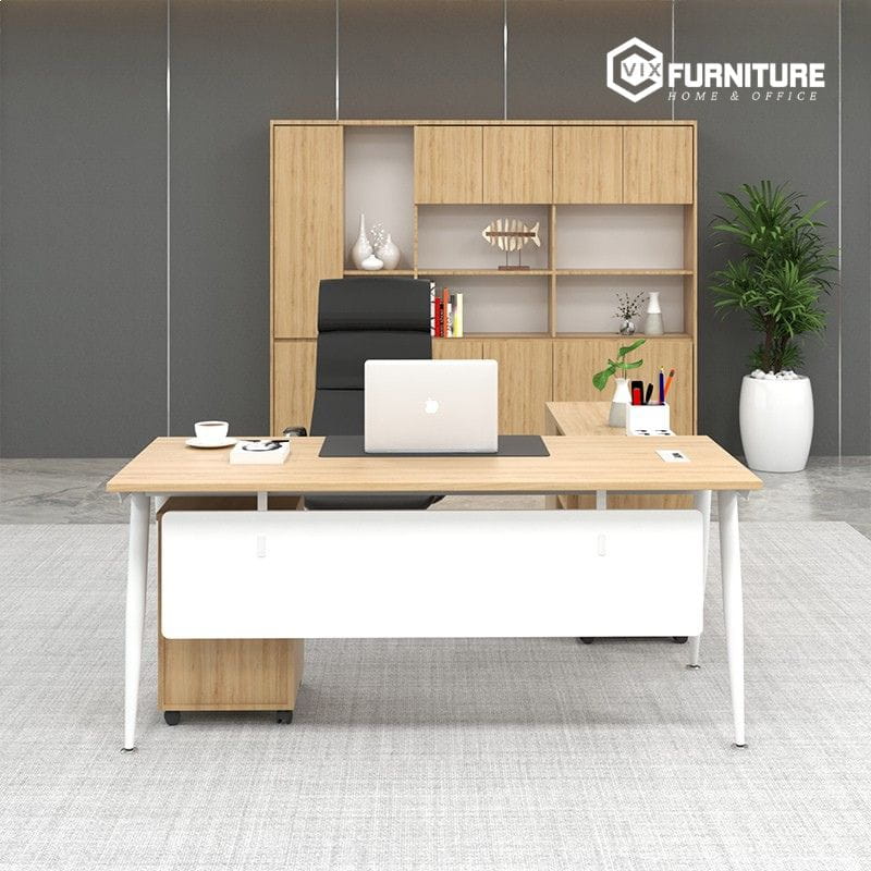 | Mặt bàn | Mặt bàn gỗ công nghiệp phủ Melamine dày 25mm, phù hợp với tiêu chuẩn khắt khe về sản phẩm nội thất văn phòng hiện nay. |