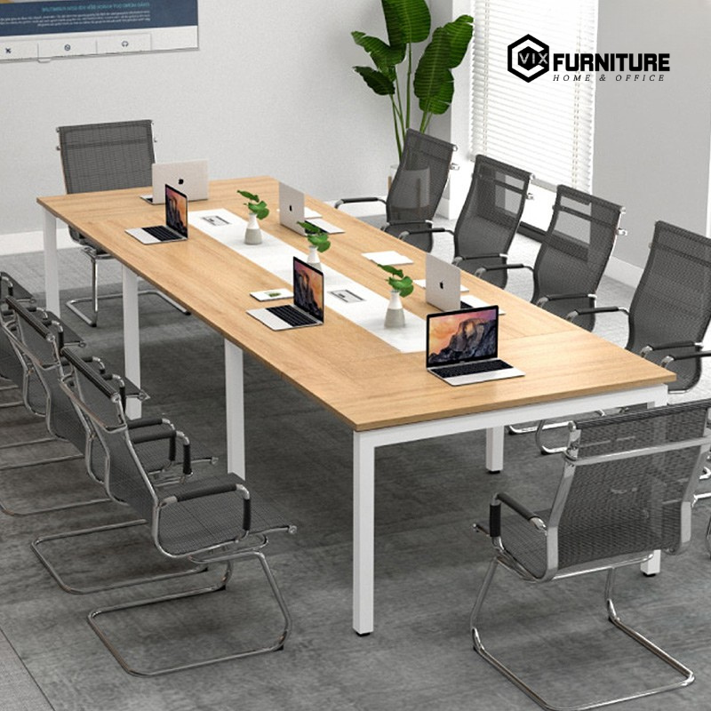 Bàn Họp Eos ECH02 được làm từ gỗ công nghiệp phủ Melamine cao cấp, giúp chống trầy xước, chống thấm và dễ vệ sinh. Thiết kế mặt bàn sắc nét, vuông vắn, mang đến cảm giác chuyên nghiệp và hiện đại. Chân bàn thiết kế vững chắc, chịu lực tốt, đảm bảo độ ổn định trong suốt quá trình sử dụng. Màu sắc trung tính, phù hợp với nhiều phong cách nội thất văn phòng hiện nay. Bàn họp Eos ECH02 không chỉ tiện dụng mà còn là điểm nhấn giúp nâng cao hình ảnh doanh nghiệp trong mắt đối tác và nhân sự.