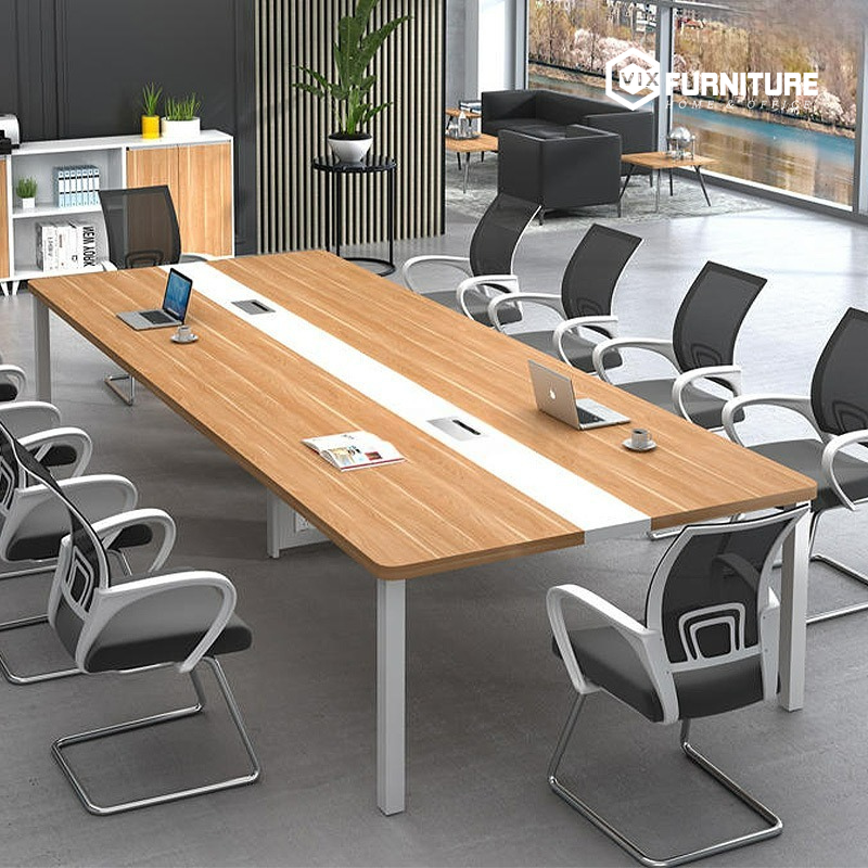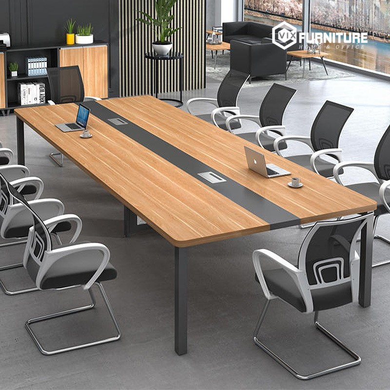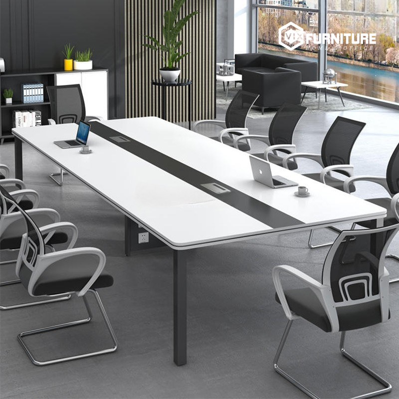Bàn họp Eos ECH03 nổi bật với mặt bàn rộng rãi, tạo không gian thoải mái để trao đổi, làm việc nhóm và tổ chức các buổi họp quan trọng. Chân bàn được thiết kế chắc chắn, chịu lực tốt, mang đến sự an tâm khi sử dụng lâu dài. Bề mặt bàn được phủ lớp sơn chống trầy xước, giúp duy trì vẻ đẹp bền bỉ theo thời gian. Ngoài ra, thiết kế thông minh của bàn còn tối ưu diện tích, phù hợp với cả phòng họp nhỏ và lớn.