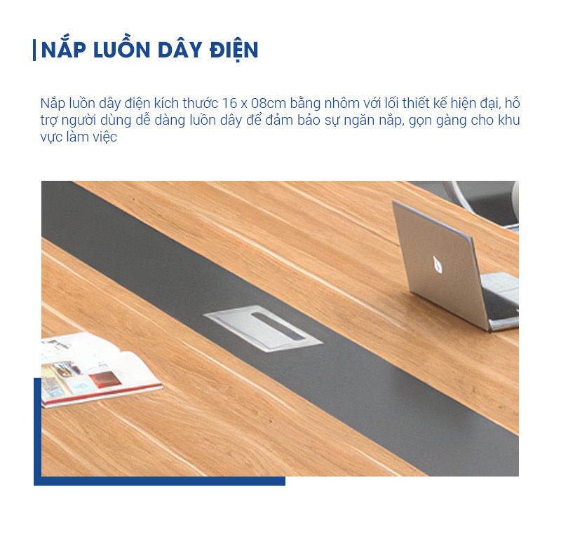 | Nắp luồn dây điện | Bàn thiết kế nắp luồn dây điện bằng nhôm kích thước 30x12cm giúp văn phòng làm việc trở lên gọn gàng, ngăn nắp hơn. |