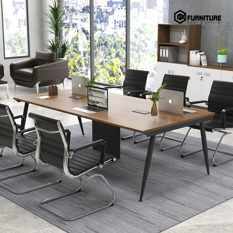Bàn Họp Eros ERH01A sở hữu kiểu dáng hình chữ nhật đơn giản nhưng tinh tế, dễ dàng bố trí trong nhiều phong cách phòng họp khác nhau. Màu sắc bàn trung tính, kết hợp giữa mặt bàn vân gỗ và chân sơn tĩnh điện, giúp tăng thêm vẻ hiện đại và trang nhã. Các chi tiết như đường bo góc nhẹ, cạnh bàn mịn màng góp phần tạo cảm giác an toàn và thoải mái khi sử dụng.