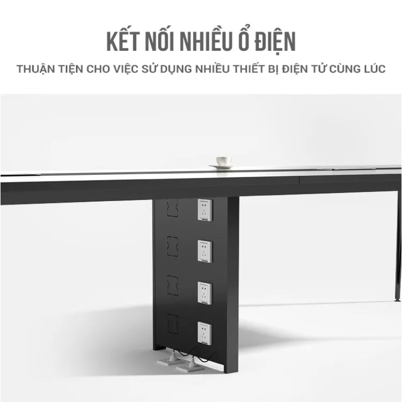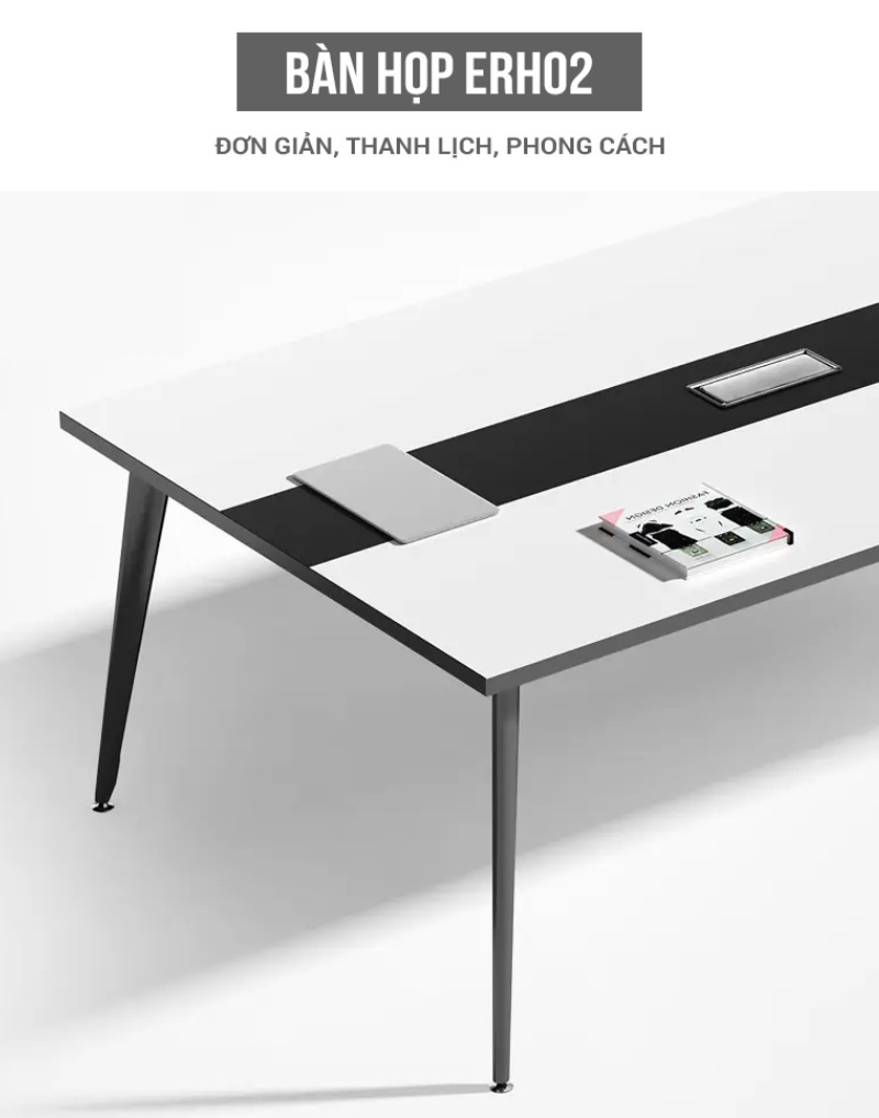 Bàn Họp Eros ERH02 nổi bật với kích thước rộng rãi, phù hợp cho 8–12 người ngồi, giúp tạo điều kiện lý tưởng cho các cuộc họp nhóm, họp phòng ban hoặc họp lãnh đạo. Mặt bàn thiết kế liền khối, chắc chắn, với bề mặt nhẵn mịn thuận tiện cho việc trình bày tài liệu, laptop, và các thiết bị hỗ trợ họp. Ngoài ra, sản phẩm còn tích hợp hệ thống hộp điện và lỗ đi dây âm bàn, giúp tối ưu hóa trải nghiệm sử dụng và giữ không gian luôn gọn gàng, chuyên nghiệp.