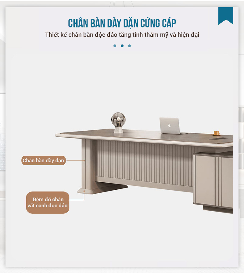Bàn lãnh Đạo Nhập Khẩu Ankeni AKN-B957 không chỉ được đánh giá cao nhờ thiết kế hiện đại và sang trọng mà còn được nhiều người yêu thích lựa chọn bởi chất lượng cao, bền bỉ theo thời gian. Sản phẩm mang đến nhiều ưu điểm nổi bật cho người sử dụng.