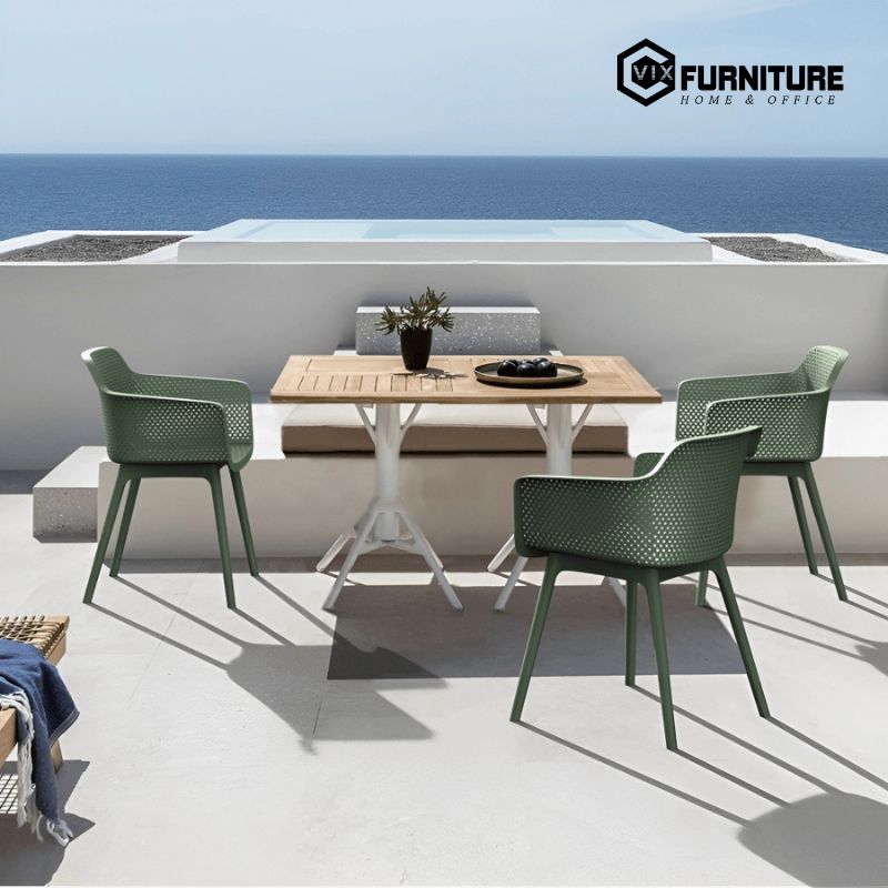 Ghế Cafe Nhựa Đúc VFST3062 được chế tạo từ nhựa nguyên khối chất lượng cao, mang lại độ bền vô song và khả năng chống chịu thời tiết tuyệt vời. Chất liệu này không chỉ giúp ghế chịu lực tốt mà còn dễ dàng vệ sinh, bảo quản, đảm bảo vẻ ngoài luôn mới mẻ theo thời gian.